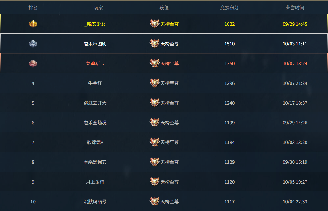 【新闻】S35赛季最后一周,当前排名公布